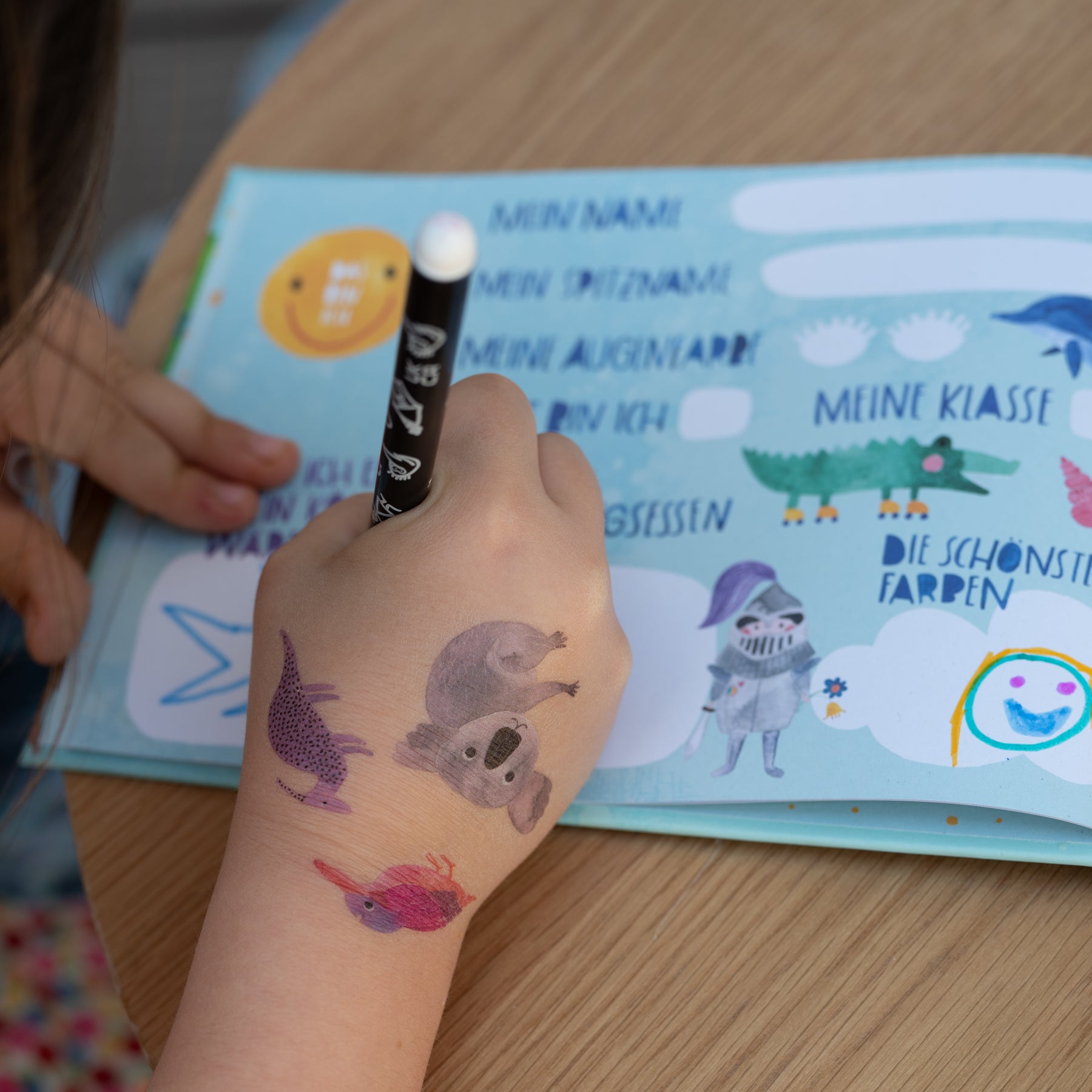 Die einen malen gern, die andern schreiben gern und wieder andere lieben das Ankreuzen. In unserem Schulfreundebuch findet jeder was für sich. Bei unserem Freundinnen- und Freundebuch für Schulkinder geht es um den Spaß am Ausfüllen, ganz nach dem Motto: weniger Fragen sind mehr UND selber Ausfüllen macht Freude und stolz!